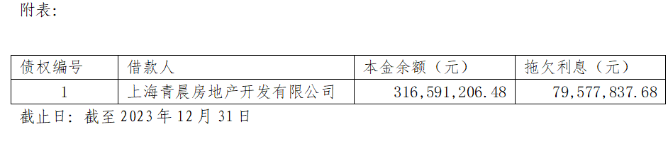 Z6·尊龙凯时[中国]官方网站 拟对上海银行股份有限公司市北分行受让的上海青晨房地产开发有限公司单户不良债权进行处置。详见附表。(债权信息供参考,最终以借据、合同、法院判决等有关法律资料为准。)